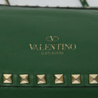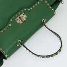 VALENTINO Studs Hand Bag Leather 2way Green Gold Auth BA1659V