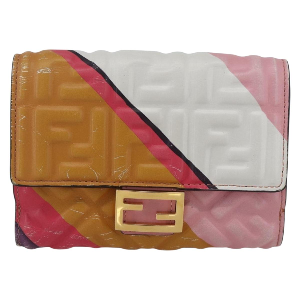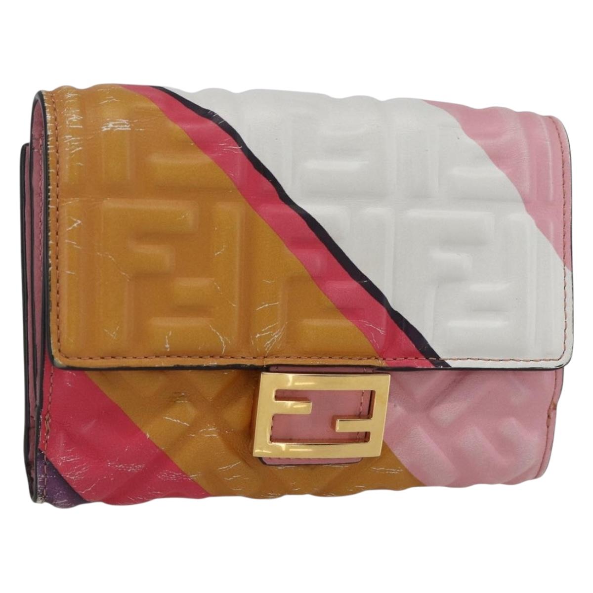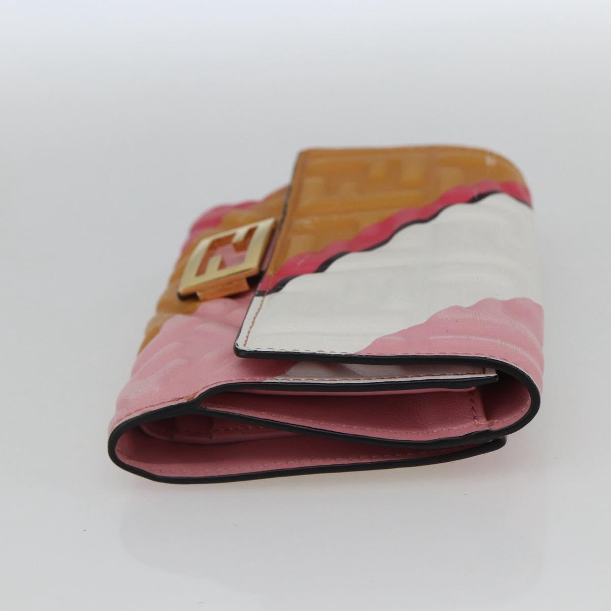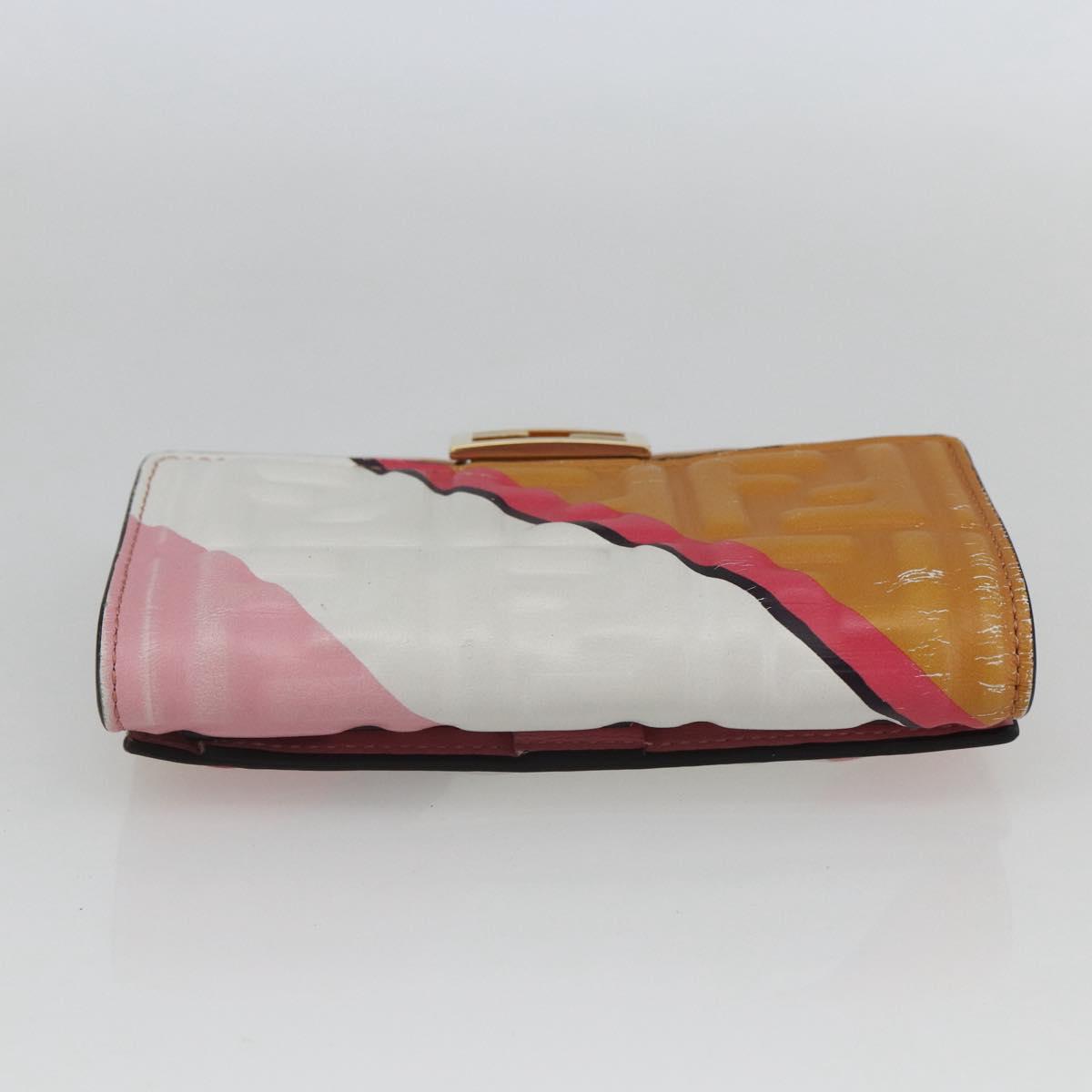 FENDI Zucca Canvas Wallet Leather Pink White gold Auth 157550