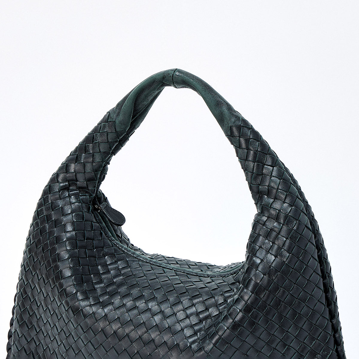 BOTTEGA VENETA Classic INTRECCIATO Shoulder Bag Black Black Leather Auth