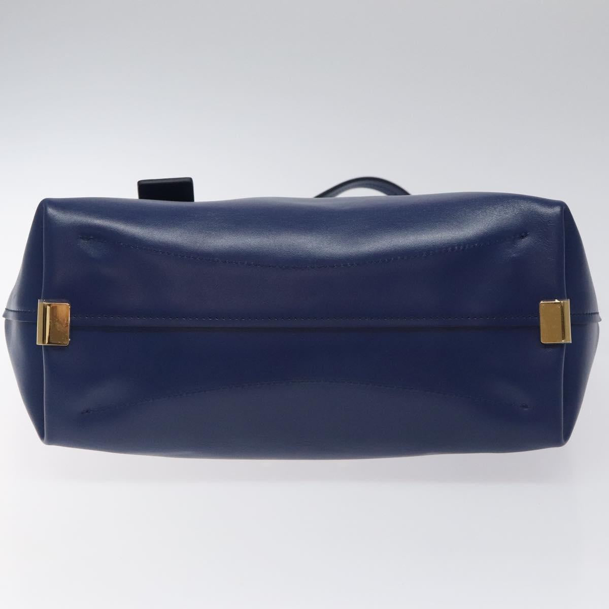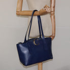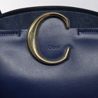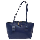 Chloe C. Medium Shoulder Bag Leather Blue Gold Auth BD1375V