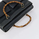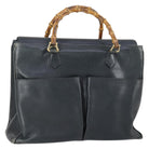GUCCI Bamboo Tote Bag Leather Black Gold Auth 153189
